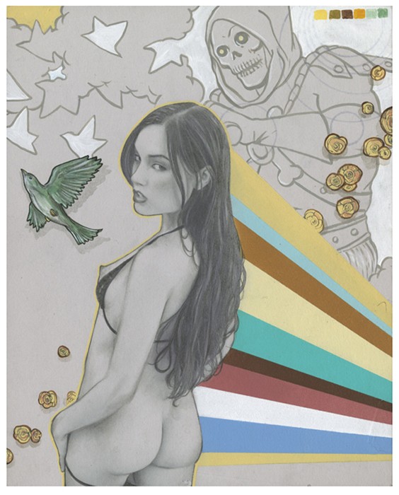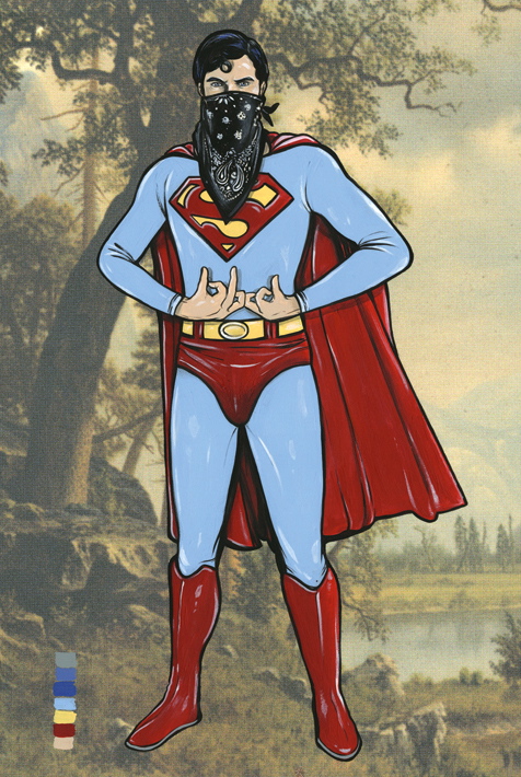 Stumbled on some really wicked paintings by this dude. Incorporating elements of pop culture, including comic book super heroes and villains, porn stars like Sasha Grey, Hip Hop legends like Biggie, skulls, robots, rainbows, and assorted wildlife, and mashing them up together. Take one part hipster, one part weird, one part irony, mix well together, and you get something pretty uber cool. I want one on my wall.