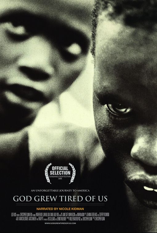 In 2006 a revealing documentary was released written and directed by Christopher Dillon Quinn that follows the journey of 3 Lost Boys of Sudan called God Grew Tired of Us. If you haven`t heard of the lost boys – they are the 27000 young displaced boys fleeing the Sundanese civil war by foot, walking for hundreds of miles, often with little or no food or clothing. It`s a fascinating journey that focuses in on the three young men as they look for and adjust to a new life in America.