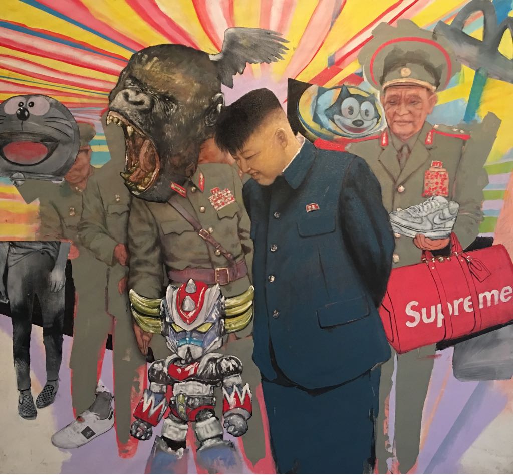 The link that associates these artists, besides the already mentioned interest for analyzing in a symbolic and ironic way the contemporary world and the frivolous icons of today’s popular culture, is a deep passion for Art History. Infact the inspiration comes from Bacon, Braque, Cezanne, Picasso, Rembrandt and Warhol, among the others masters, are clearly recognizable, not only in the techniques adopted but also un the subject used.